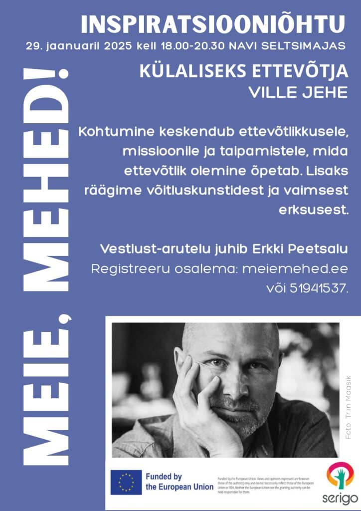 Inspiratsiooniõhtute sarja raames avavad tuntud mehed vahetus vestluses oma elutarkusi ja kogemusi, väljakutseid ning inspiratsiooniallikaid. Läbivateks teemadeks on seiklus, tervis ning ettevõtlikkus. Esimene inspiratsiooniõhtu toimub kolmapäeval, 24. septembril 2025 kell 18.00-20.30 Navi seltsimajas, kus külaliseks on seikleja Mart Kuusk. Kohtumise teemaks on seiklused ja elujanu, enese ületamine ning tarkused, mida neist kogemustest kaasa võtta. Esimesele kohtumisele saab end kirja panna siin. Järgmine inspiratsiooniõhtu leiab aset 12. novembril, külaliseks meestearst Margus Punab. Kohtumise fookuses on meeste tervis, ent juttu tuleb ka maalikunstist ja kunsti kogumisest kui hobist. Kolmas inspiratsiooniõhtu toimub 29. jaanuaril, kus tuntud ettevõtja Ville Jehe räägib ettevõtlikkusest, võitluskunstidest ja vaimsest erksusest.